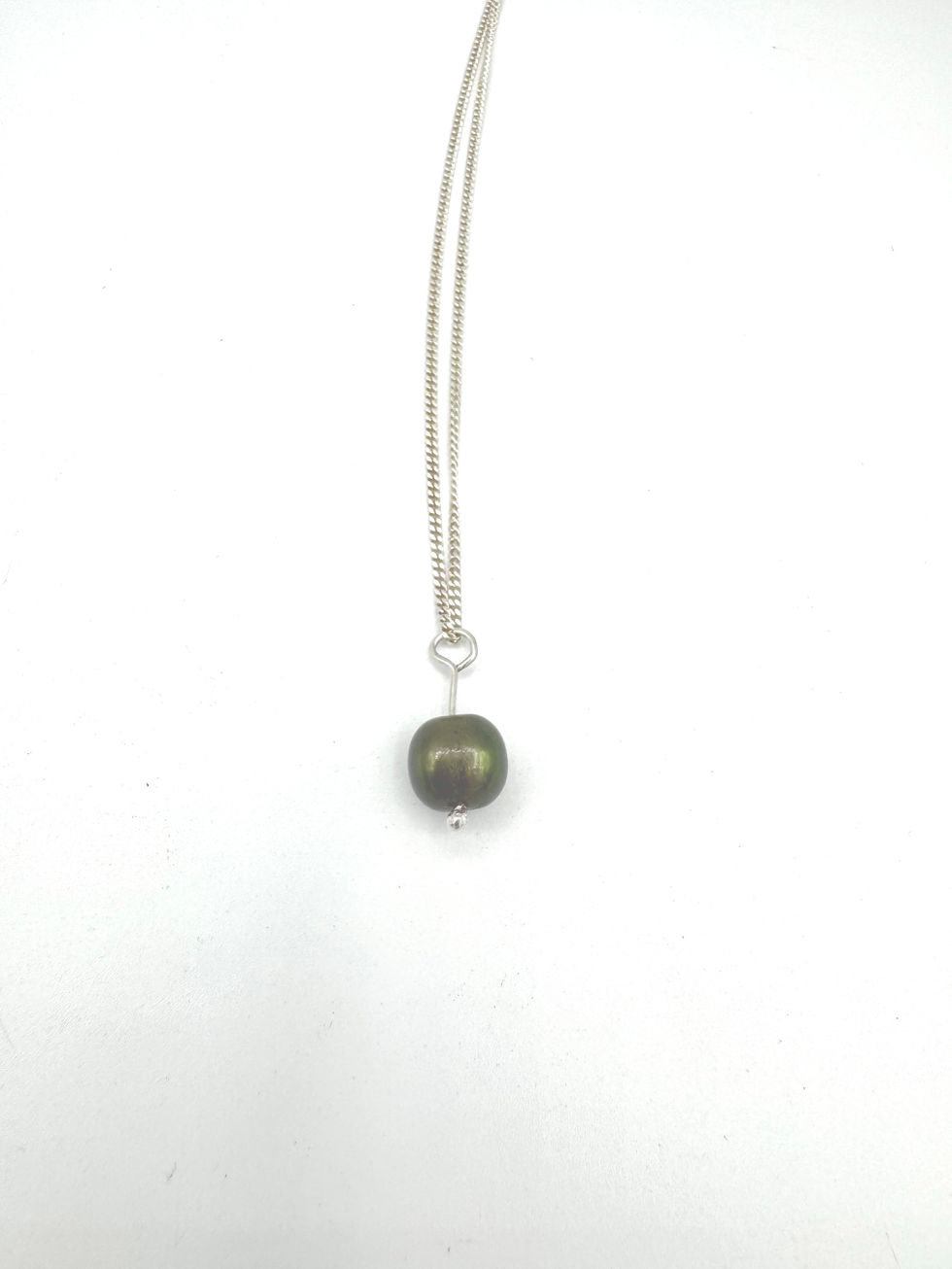 Handgemaakte unieke sterling zilveren hanger met een prachtige natuurlijk glanzende groene zoetwater parel.